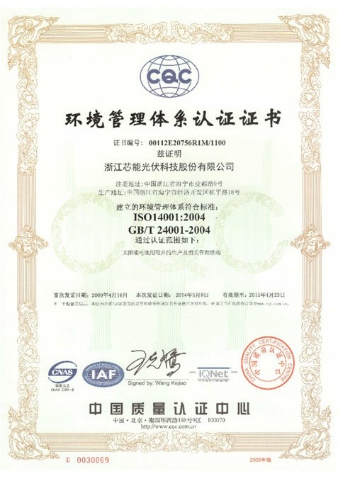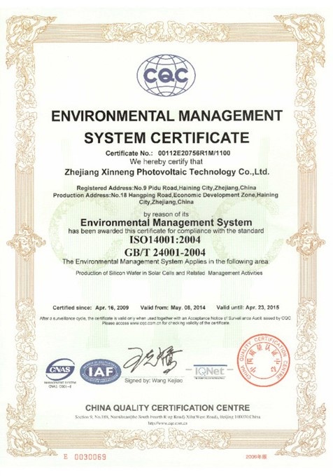 公司通過ISO14001:2004環境管理體系認證 2009-04-16 00:00:00 浙江芯能光伏科技股份有限公司 瀏覽次數 7018 上一條公司通過ISO9001:2000質量管理體系認證 下一條浙江省科技廳常務副廳長壽劍剛蒞臨我司調研