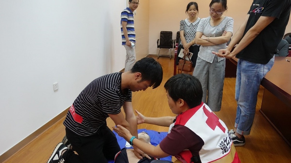 急救為何那么重要?因?yàn)樵谟龅揭馔鈧r(shí),時(shí)間就是生命!據(jù)專家介紹,當(dāng)自然災(zāi)害、意外傷害發(fā)生后的4至6分鐘是挽救生命的“黃金時(shí)間”。每耽誤1分鐘,死亡率、致殘率就會(huì)直線上升。為了使公司員工掌握日常急救知識(shí),糾正以往錯(cuò)誤的認(rèn)知,避免操作不當(dāng)引起被施救者的“二次損傷”,在遇到突發(fā)情況時(shí)及時(shí)進(jìn)行科學(xué)自救和互救。7月28日下午,公司工會(huì)邀請(qǐng)了“全科副主任醫(yī)師,浙江省紅十字會(huì)講師”沈亮老師對(duì)公司各部門主管、經(jīng)理進(jìn)行意外急救知識(shí)培訓(xùn),共有60余人參加了培訓(xùn)。