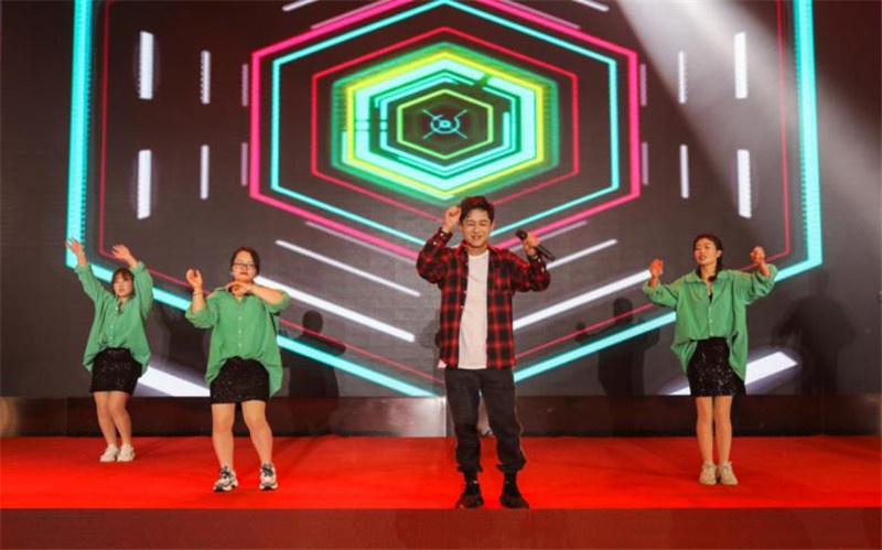 接下來的節目里,芯能人各展才華,精彩演繹。晚會表演總是不乏歌舞,今年更有別出心裁的節目形式和內容。古箏《女兒情》娓娓道來一段難以訴說的女兒情,唯美動人,直戳人心。舞蹈《吉祥六寶》,以可愛、胖憨的動物形象跳舞,喜氣洋洋鬧新春。創意舞蹈《小人舞》是時下興起的一種新型舞蹈形式,雙人組成一個小人,配合讓小人舞動起來,滑稽、幽默的動作引得全場陣陣歡笑。小品《垃圾分類》是今年熱門的話題,小品以《西游記》為背景,師徒四人之間關于垃圾分類的對話展開,在讓觀眾開心一刻的同時普及了垃圾分類的知識。晚會演出在《明天會更好》的歌聲中進入尾聲,全場賓客隨著歌聲揮舞著手中的小紅旗,場面壯觀、喜樂,共同祝福祖國繁榮昌盛,芯能科技的明天更加美好。